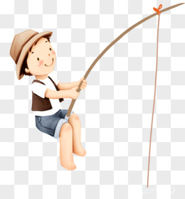 彩色插画风小朋友下水捕鱼场景免抠元素
