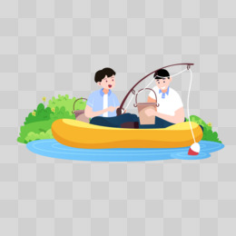 爸爸儿子钓鱼手绘卡通元素