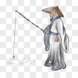 手绘姜太公钓鱼免抠元素