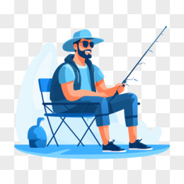 卡通手绘男生休闲钓鱼垂钓免抠元素