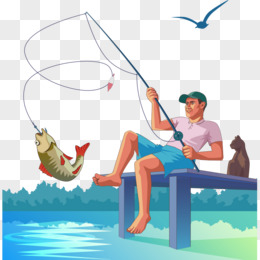 手绘中国风水墨渔翁带着鸬鹚垂钓changj sucai