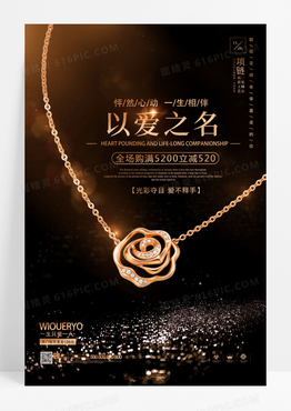 黑色时尚高端创意时尚珠宝定制钻戒吊坠促销海报