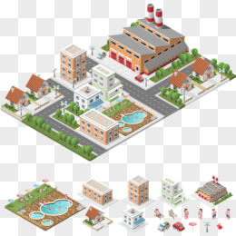 城镇都市地产立体房屋模型矢量