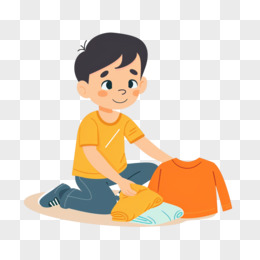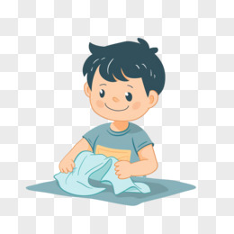一组卡通小女孩完成独立劳动课程套图之整理与收纳元素