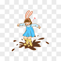 卡通彩色小女孩踩泥坑元素