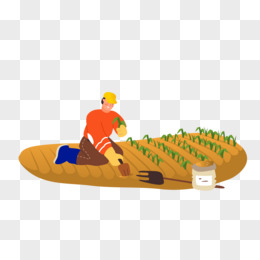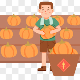 卡通扁平风男孩菜园地收获南瓜免抠元素
