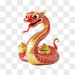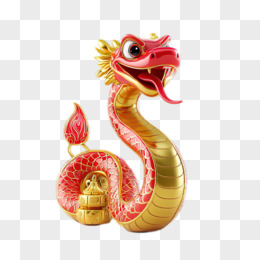 戴红帽子的金色俏皮可爱蛇年卡通蛇IP形象免抠元素