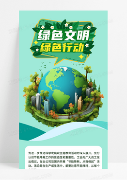 绿色文明绿色行动爱护地球低碳环保手机长图海报