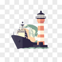平面插画轮船灯塔和地球免抠元素
