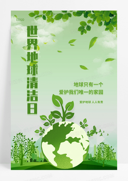 正能量绿色绿叶大树世界地球清洁日手机宣传海报