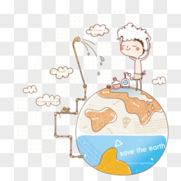 手绘卡通节约用水保护地球免抠创意插画