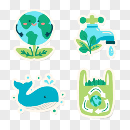 一组卡通手绘环保节约用水贴纸免抠元素