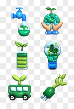 一组矢量膨胀风3D立体环保节约用水贴纸合集元素
