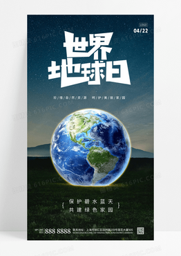 简约夜景世界地球日宣传海报保护地球节日手机宣传海报