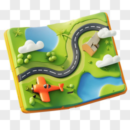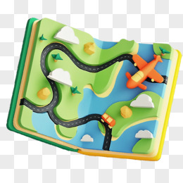 3D插画一对老年夫妇拉着行李箱看地图抠元素