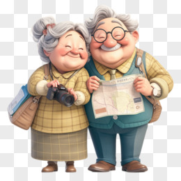 3D插画一对老年夫妇出游免抠元素