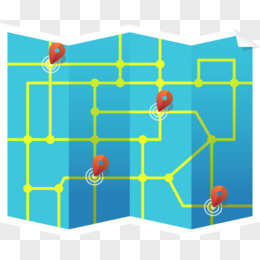 插画一幅地图和红色定位标志免抠元素