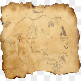 手绘插画风黄色寻宝地图素材