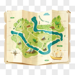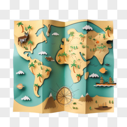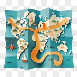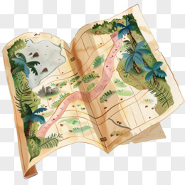 3D卡通一幅旅行地图和望远镜行免抠元素