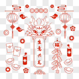 一组龙舟粽子竹子酒线稿线条装饰套图素材