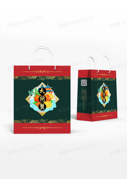 绿色古典底纹中式风格大闸蟹包装手提袋设计