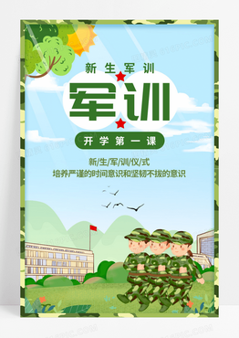 开学军训清新绿色蓝色开学季军训第一课宣传海报