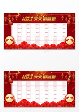 红色丝带背景销冠榜第一名奖杯宣传展板设计