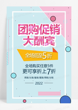 几何多彩团购促销大酬宾全场低至5折促宣传海报团购活动海报