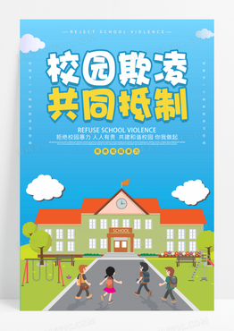 蓝色卡通拒绝校园欺凌共同抵制校园霸凌公益宣传海报