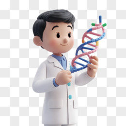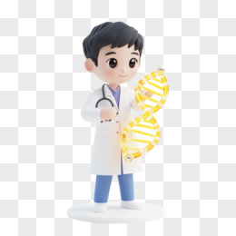3D插画穿白大褂的医生拿着DNA双螺旋结构模型免抠元素