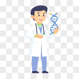 插画穿白大褂的医生拿着DNA双螺旋结构模型免抠元素