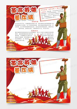 红色渐变党政革命英雄董存瑞宣传小报手抄报