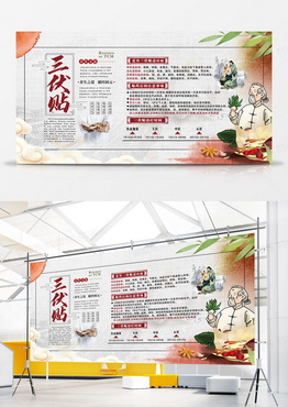手绘插画风美女三伏天养生做艾炙按摩元素