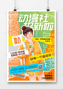 明亮轻快大学社团动漫社招新海报设计