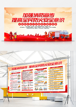 红色大气加强消防宣传提高全民防火安全意识展板冬季安全用电展板