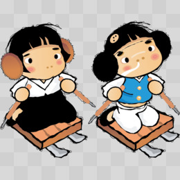 卡通手绘穿迷彩服滑雪的小男孩免抠素材