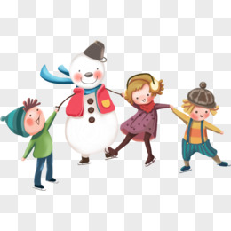 手绘卡通新年小孩们在雪地玩耍场景免抠素材