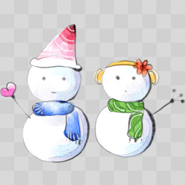 3D卡通冬季一对戴帽子围脖的雪人免抠元素