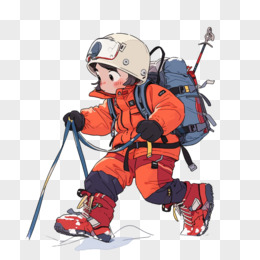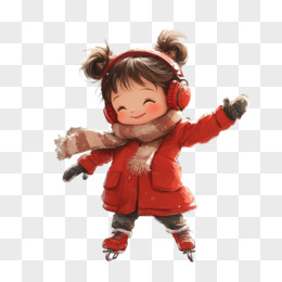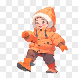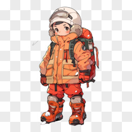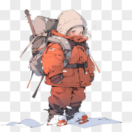 手绘冬天女孩在雪地上搭帐篷露营元素