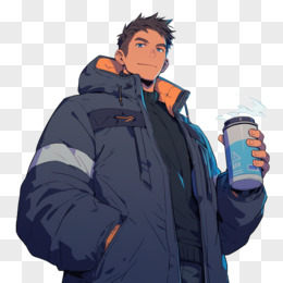 插画男孩拿着保温杯取暖免抠元素