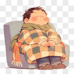 插画男孩裹着被子在沙发上取暖免抠元素