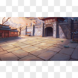动漫古城门海报背景