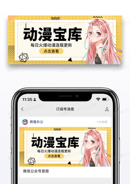 黄色简约动漫宝库公众号封面配图图片