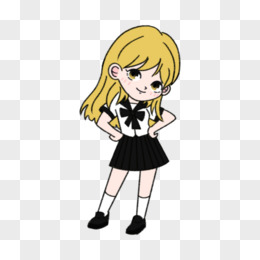 手绘卡通动漫人物形象之黄发制服女孩素材
