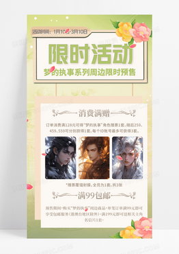 绿色小清新二次元动漫人物活动促销手机宣传海报