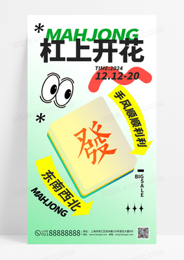 创意绿色大气时尚杠上开花麻将比赛手机海报