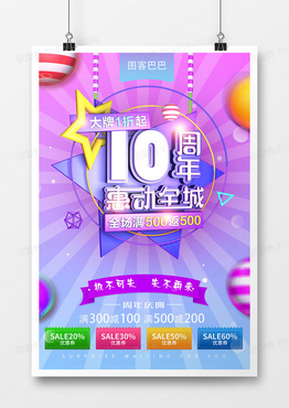 周年庆创意海报设计10周年惠动全城