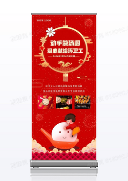 通简约动手做汤圆元宵节包汤圆易拉宝展架