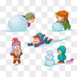 卡通手绘大雪节气雪人与打雪仗儿童场景素材