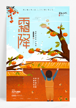 卡通插画霜降二十四节气宣传海报